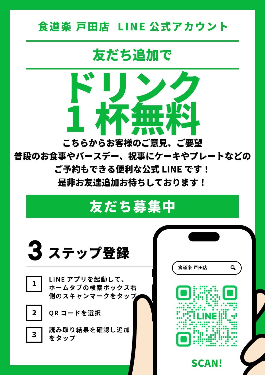 お客様のご意見、ご要望、普段のお食事やバースデー、祝事にケーキやプレートなどの予約もできる便利な公式LINEです!